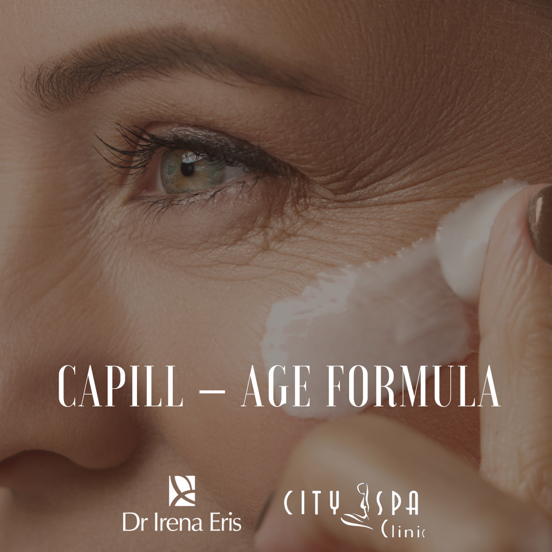 Capill-Age Formula to specjalistyczny zabieg multifunkcyjny dla cer dojrzałych z problemem rozszerzonych naczynek krwionośnych, oparty na kompleksie o unikalnej sekwencji flawonoidów HPS1 oraz składnikach aktywnych o działaniu wielowymiarowego wypełniania zmarszczek.
